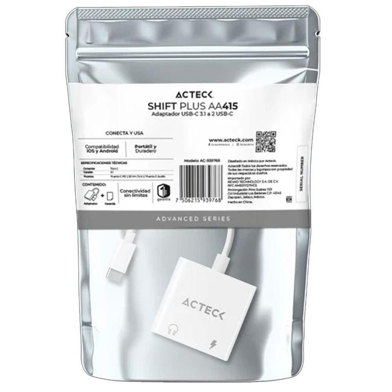 Adaptador acteck aa415 usb-c 3.1 a 2x usb-c blanco ac-939768