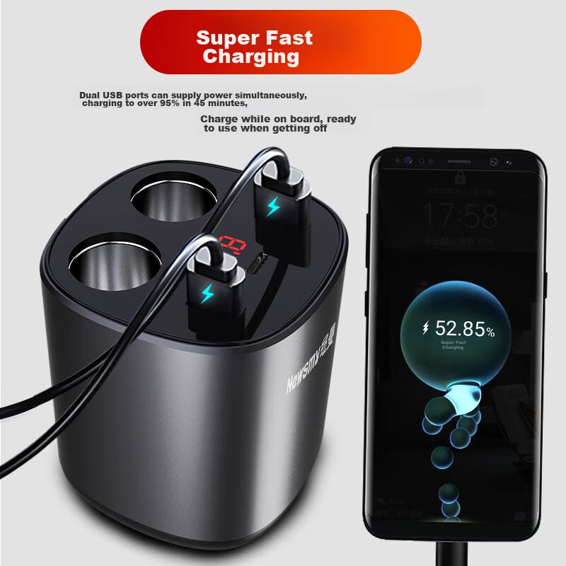 TelefoníaAccesorios para celularesCargadoresAdaptador De Coche Newman 3 En 1 Carga Rápida Pd 180W Negro