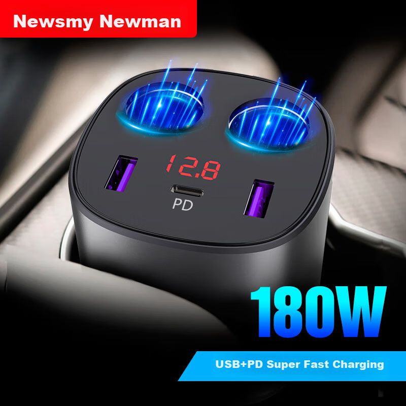 Adaptador De Coche Newman 3 En 1 Carga Rápida Pd 180W Negro