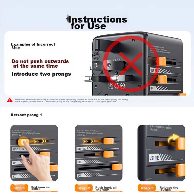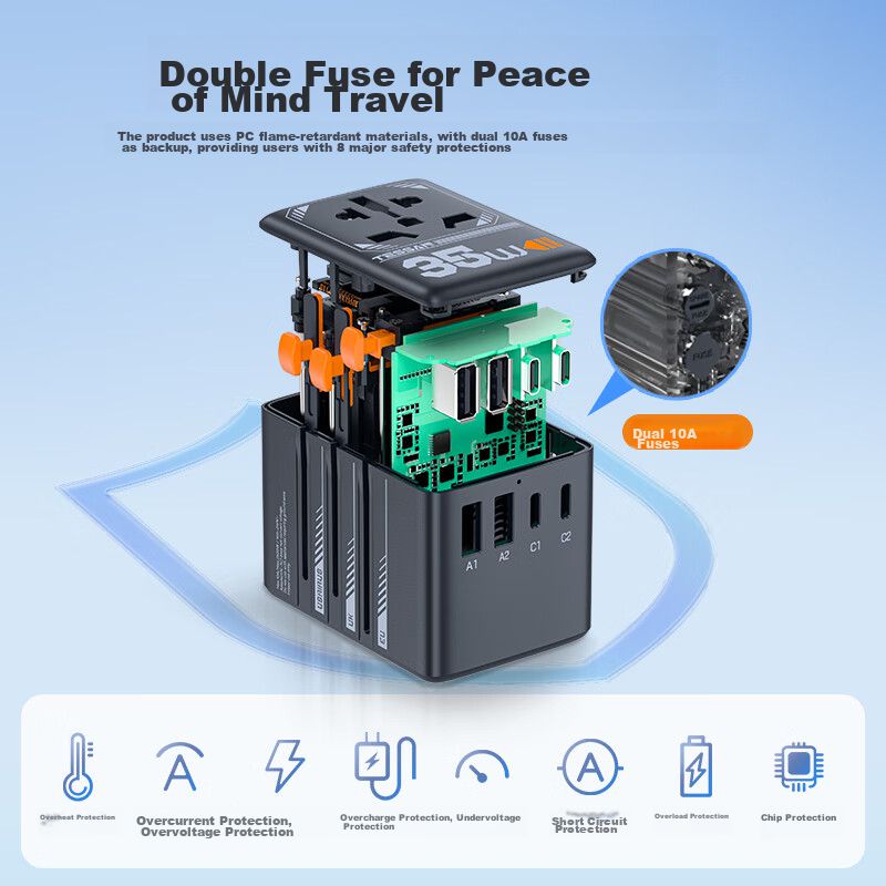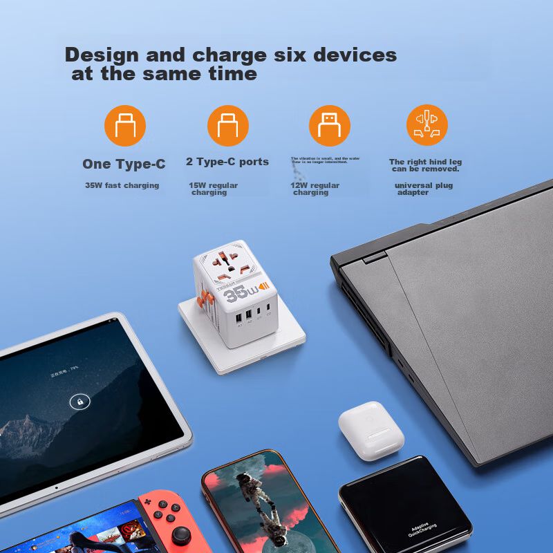 Adaptador TESSAN TS-WTA02 1 AC 2 USB-A 3 Type-C de Viaje Enchufe Multiple Salida Multiple