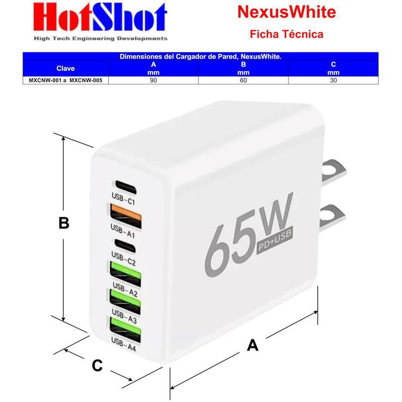 TelefoníaAccesorios para celularesCargadoresAdaptadores de Carga USB NexusWhite MXCNW-001 Cargadores de Celular