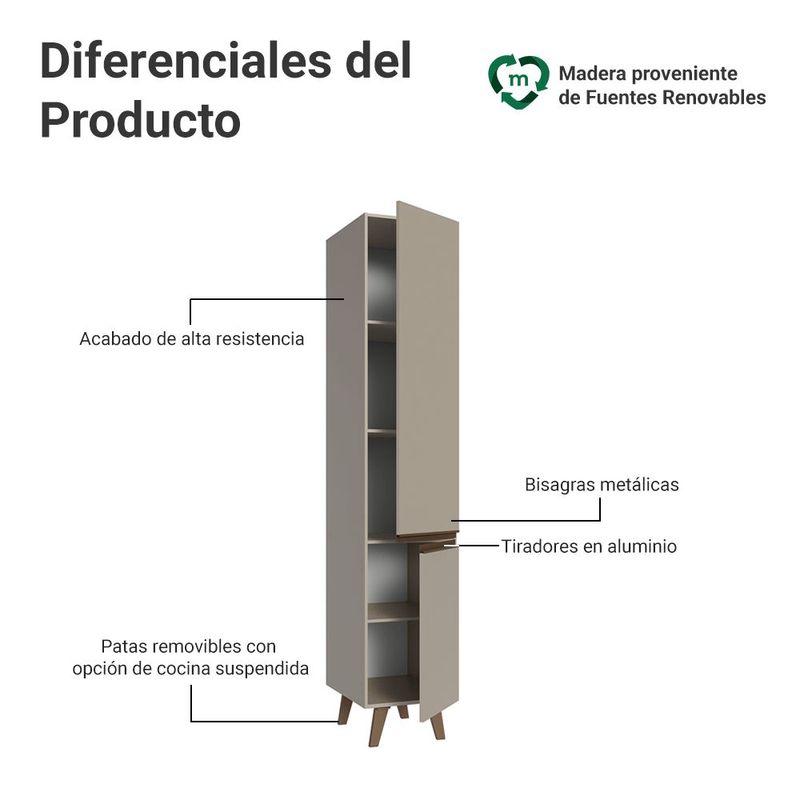 Alacena Armario Despensero Madesa Nice 40cm 2 Puertas Crema