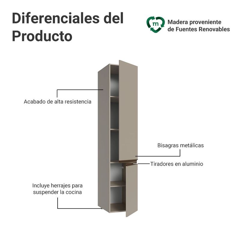 MueblesMuebles de cocinaAlacenas y DespenserosAlacena Armario Despensero Madesa Nice 40cm Crema