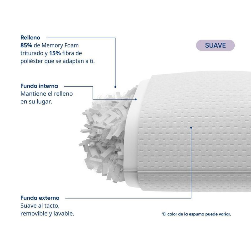 Almohada luuna ajustable suave, 2 pack, king size 88x46 cm, memory foam, funda l