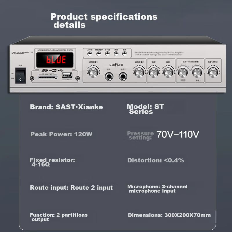 ElectrónicaAudio y equipos de sonidoBocinasAmplificador SAST ST-605 Bluetooth 120W Control Dos Zonas