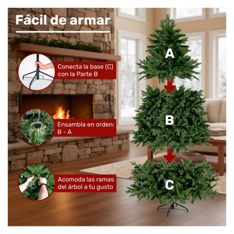 Arbol de Navidad Jardimex 1.6m Doble Rama de Abeto Pino Navideño Realista PREMIUM Frondoso Pachon Esponjoso