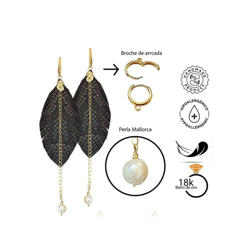 Moda y accesoriosJoyeríaAretesVangania aretes largos con pluma y perla Mallorca joyería artesanal boho chic
