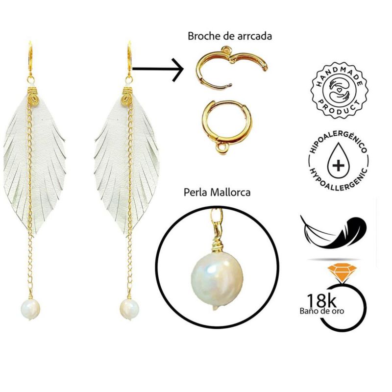 Moda y accesoriosJoyeríaAretesVangania aretes largos con pluma y perla Mallorca joyería artesanal boho chic