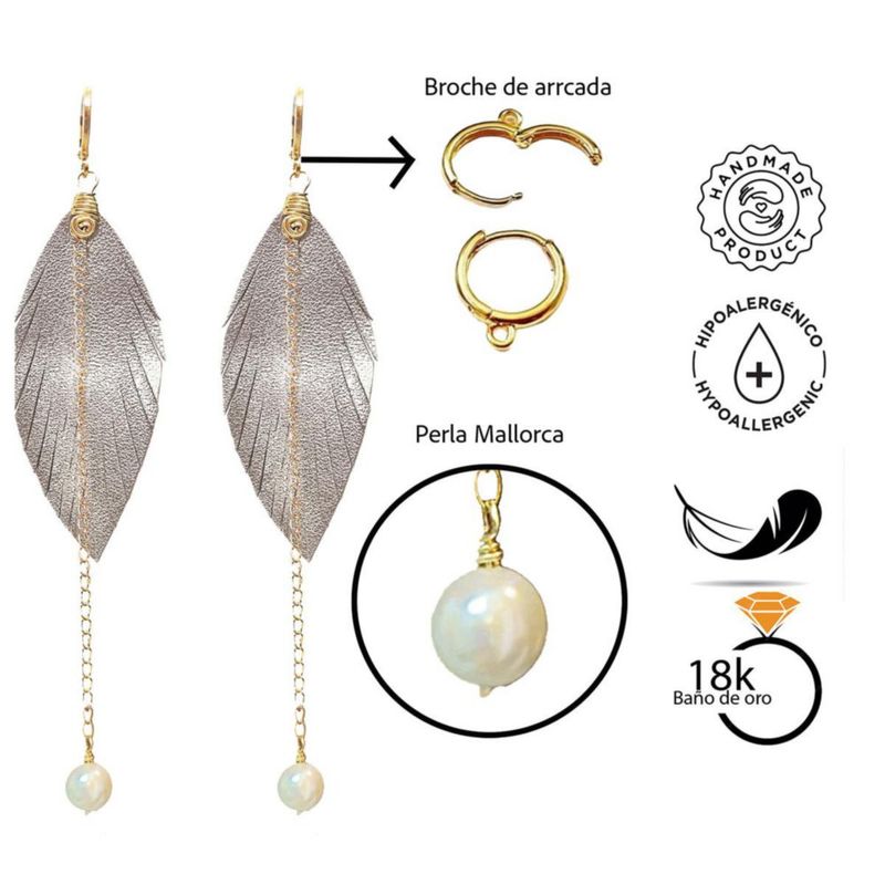 Moda y accesoriosJoyeríaAretesVangania aretes largos con pluma y perla Mallorca joyería artesanal boho chic