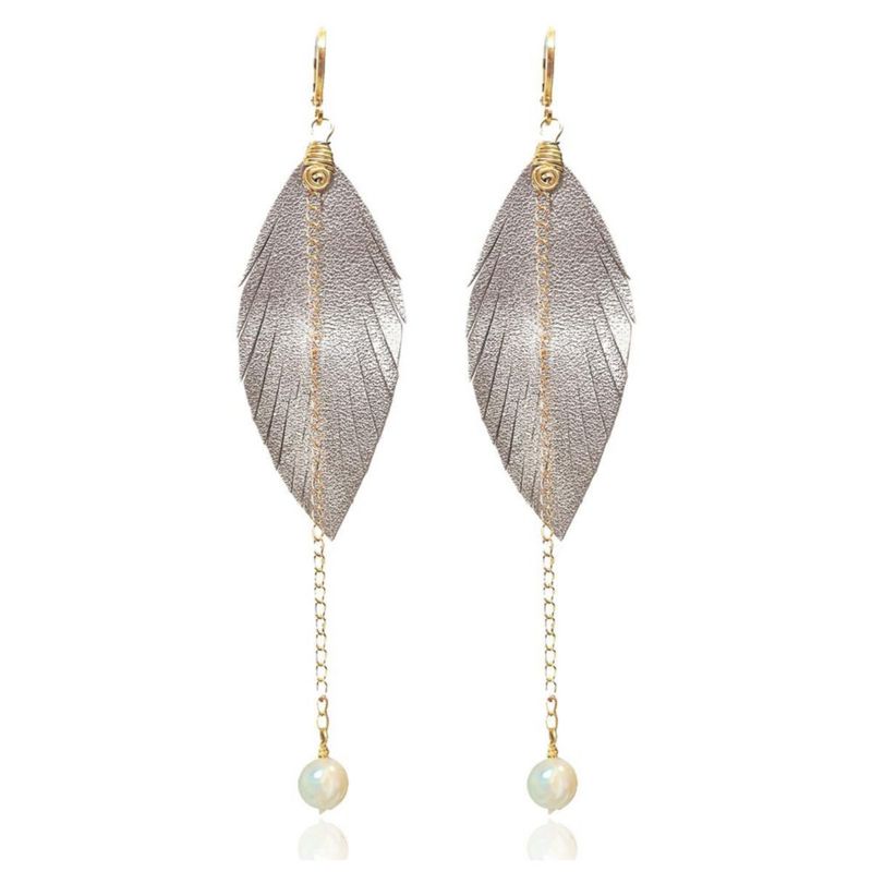 Vangania aretes largos con pluma y perla Mallorca joyería artesanal boho chic
