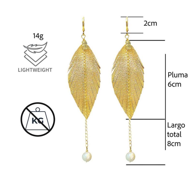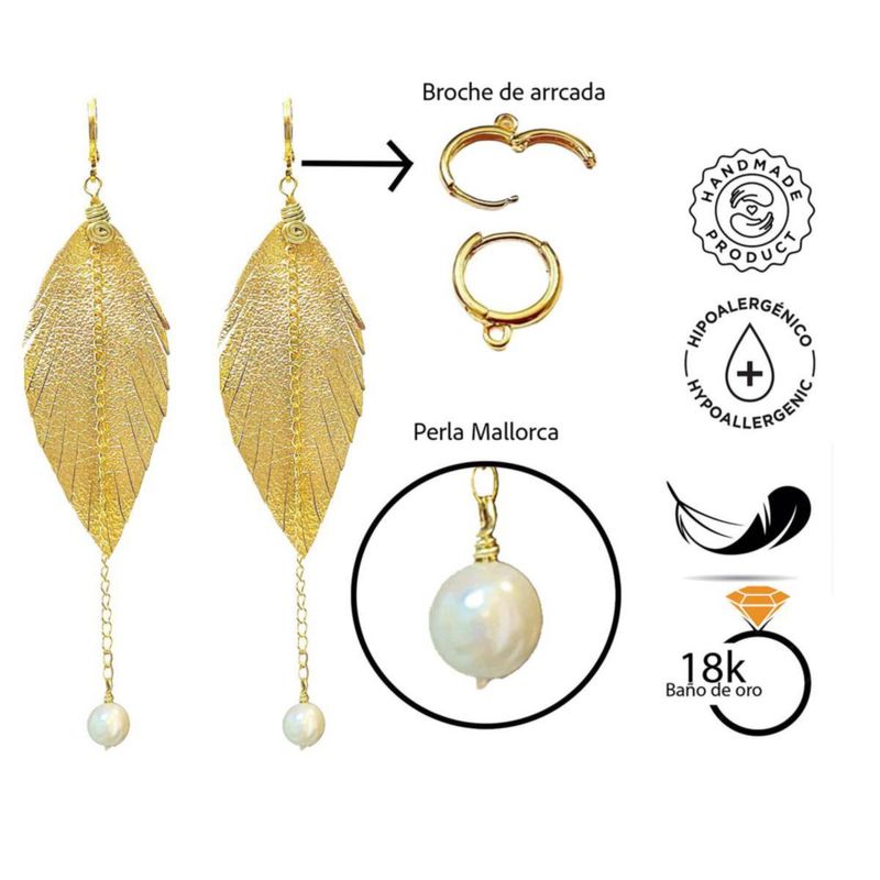 Moda y accesoriosJoyeríaAretesVangania aretes largos con pluma y perla Mallorca joyería artesanal boho chic