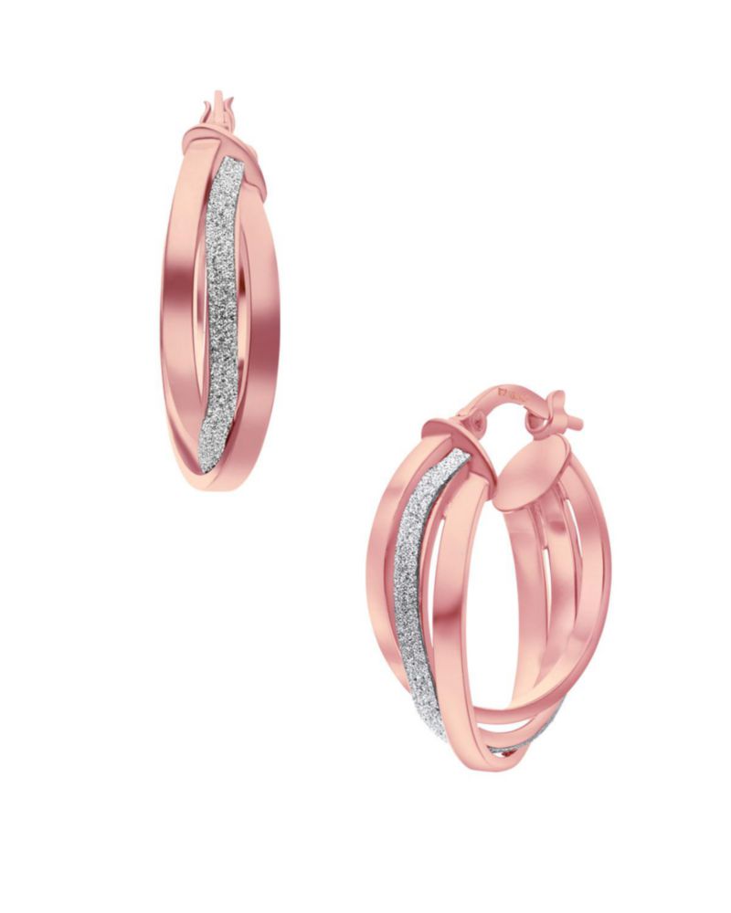 Aretes tipo argolla oro rosa 14K con diamantina OR-6000234-R