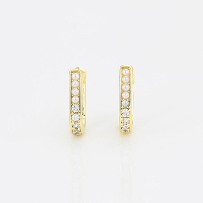 Arracadas Rectangular Niña Cristales y Perlas Oro Laminado Dorado