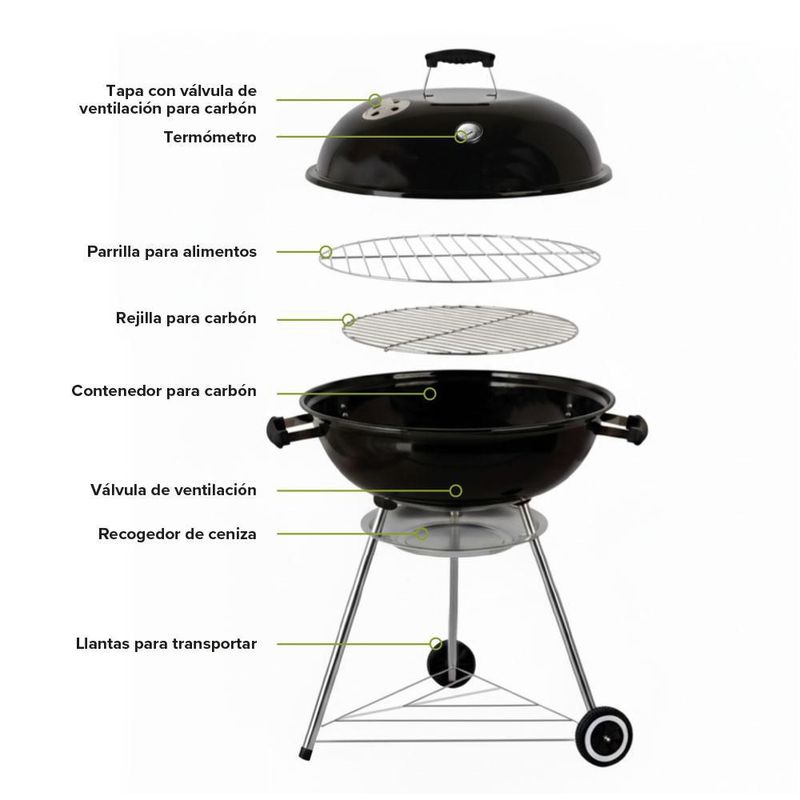 Asador de Carbón Extra Grande 22” (55 cm) Parrilla Portátil
