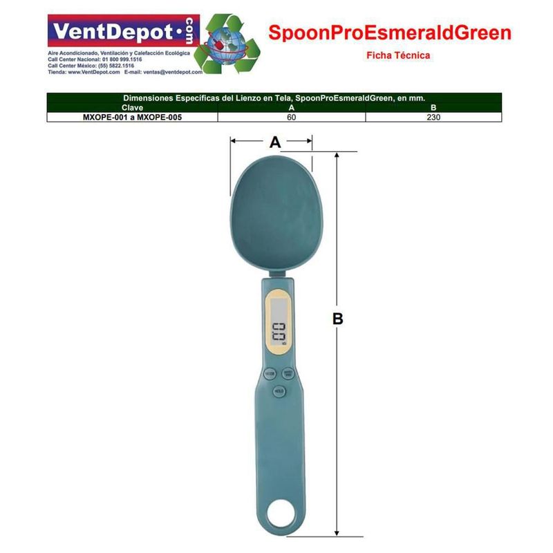 Báscula Digital Cuchara MXOPE-001 SpoonProEsmeraldGreen Utensilios Cucharas Medidoras