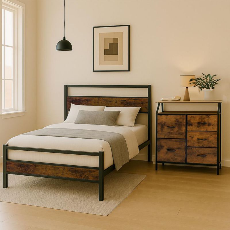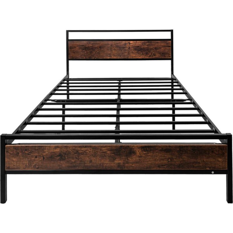 Base Cama Matrimonial Country Tipo Madera Moderna Metal Houzer