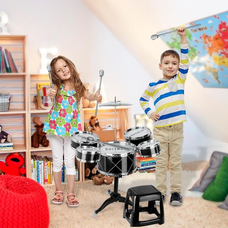 Batería para Niños con Banco, Baquetas, Bombo y Tarolas