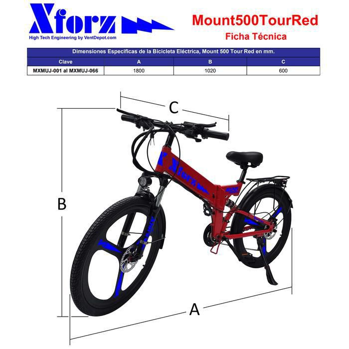 DeportesBicicletasBicicletas EléctricasBici electrica pantalla color MXMUJ-062 Xforz Mount500TourRed