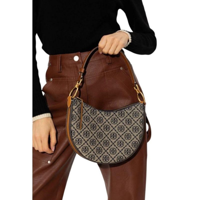 Bolsa Tory Burch Monogram Hobo Jacquard Mini Color Café.