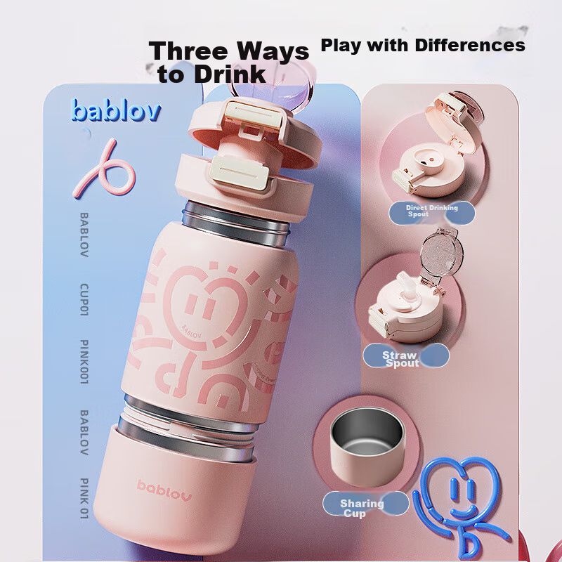 Botella Aislada Bablov Acero Inoxidable 316 Con Popote Silicona