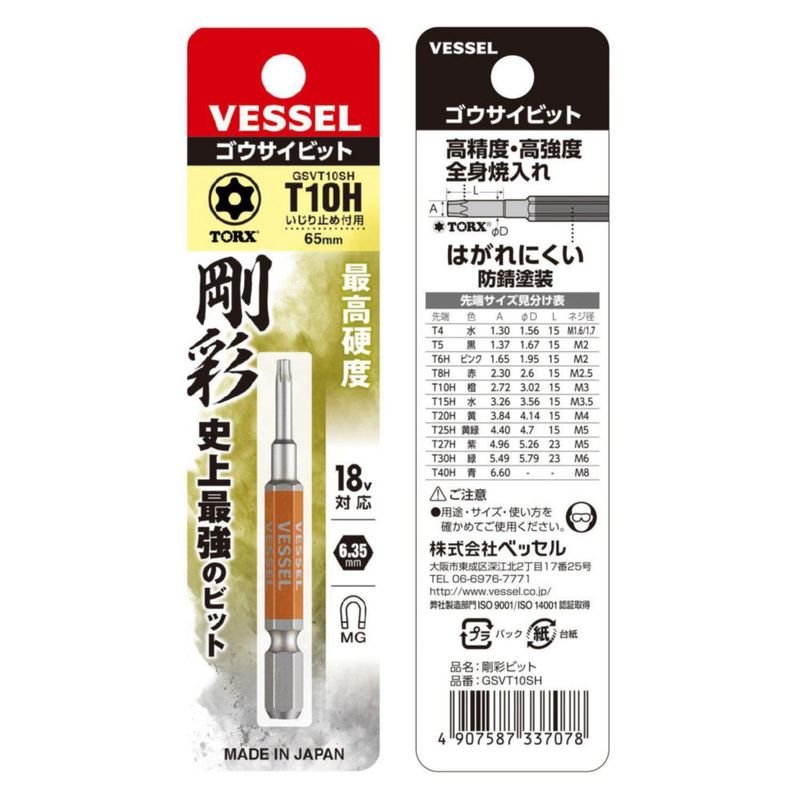 Broca rígida Torx VESSEL GSVT10SH T10H x 65 mm 1 pieza