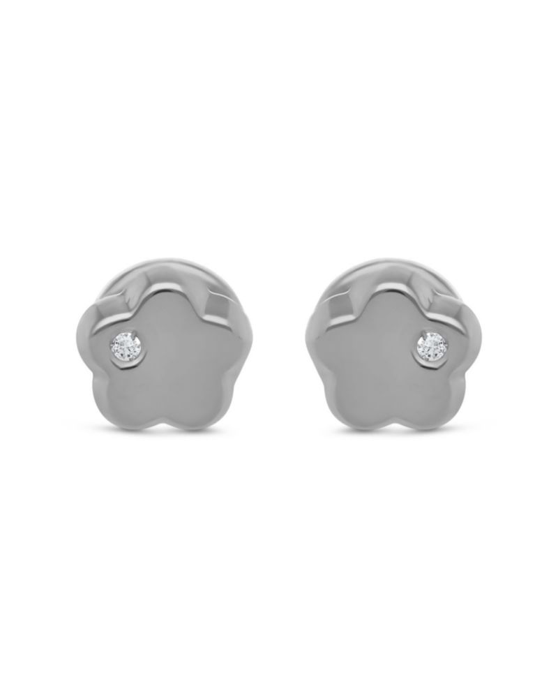 Broqueles Flor Oro Blanco 14K Con Diamante PRB-116-A