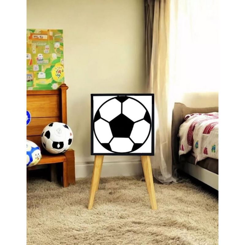 Buró Mesa De Noche Recámara Niños Futbol Balón Luz Led Negro