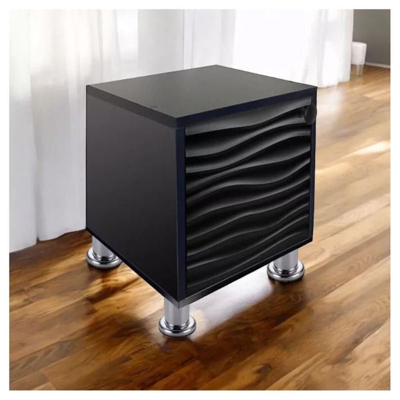 Buró Mesa Noche Luz Led Ensamblado Minimalista Negro