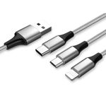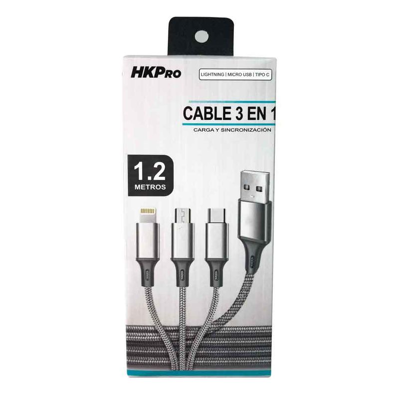 Cable 3 en 1 HKPro Lightning, Micro y Tipo C Plata