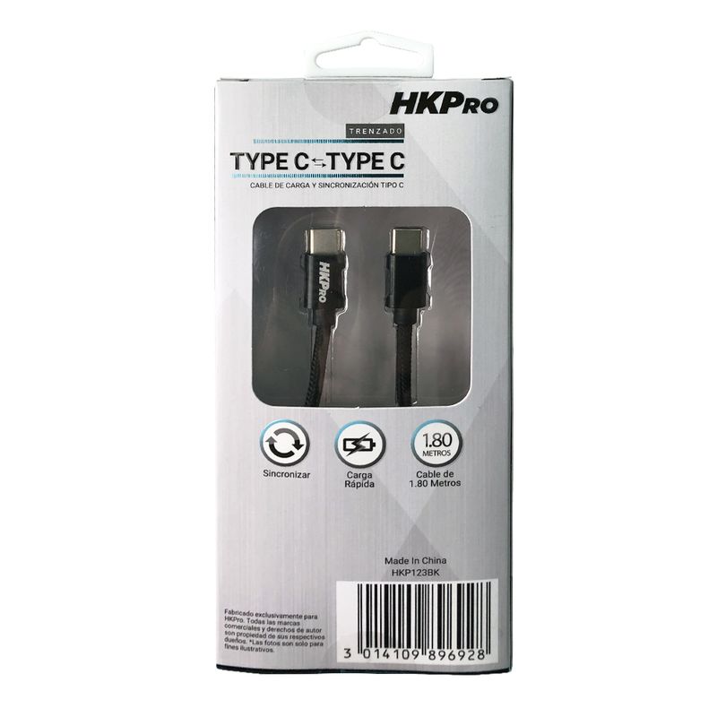 Cable Tipo C Tipo C HKPro 1.8 m Negro