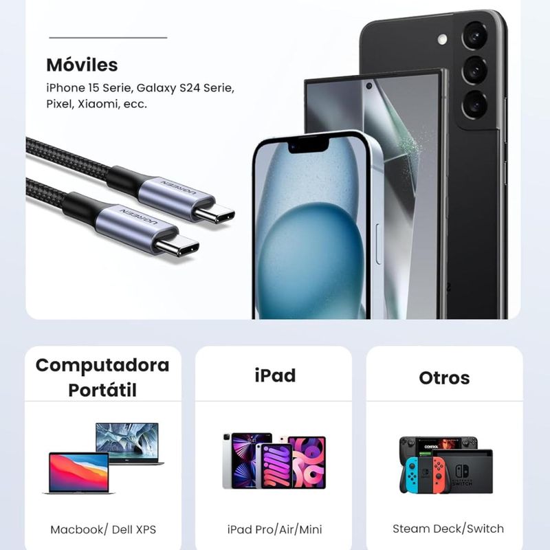 TelefoníaAccesorios para celularesCablesCable USB C a Tipo C Ugreen 60W Reversible con Nylón de 2m Negro