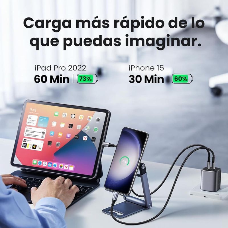 Cable USB C a Tipo C Ugreen 60W Reversible con Nylón de 2m Negro