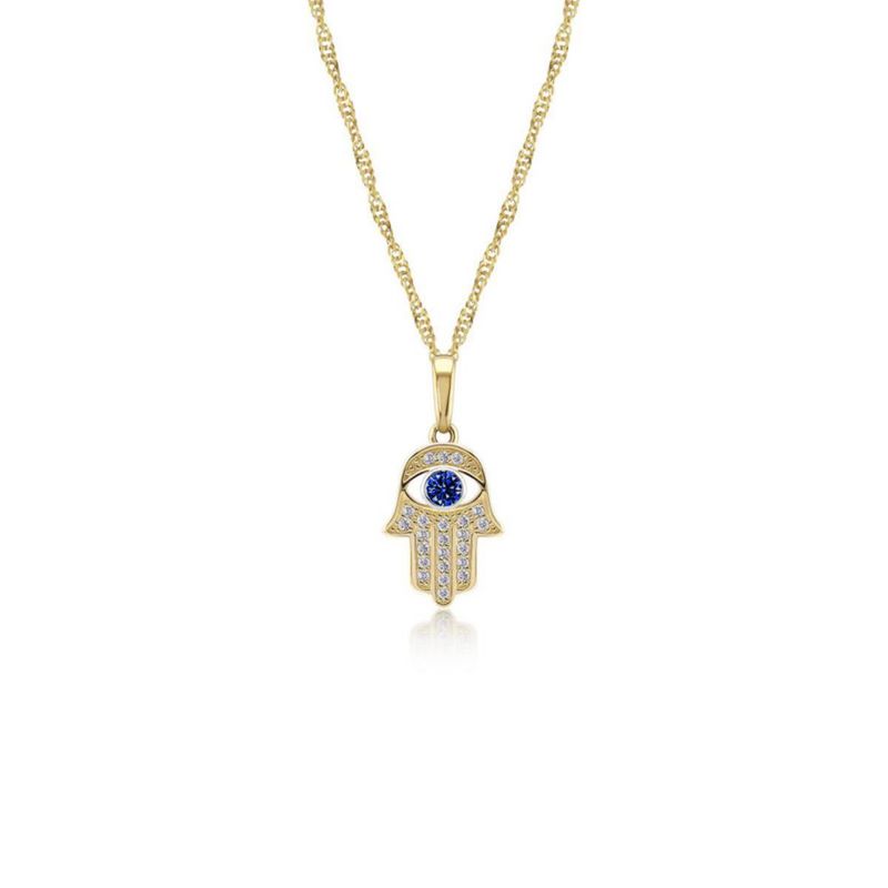 Moda y accesoriosJoyeríaCollares y DijesCadena con Dije Mano de Fátima Piedra Azul 10k Oro abba Joyas