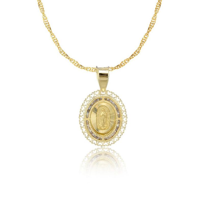 Cadena Con Medalla Virgen de Guadalupe Encaje Gde. 10k Oro abba Joyas