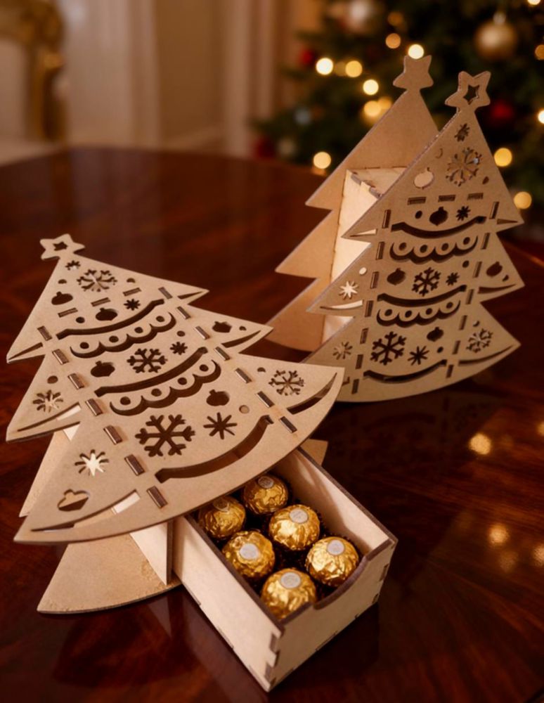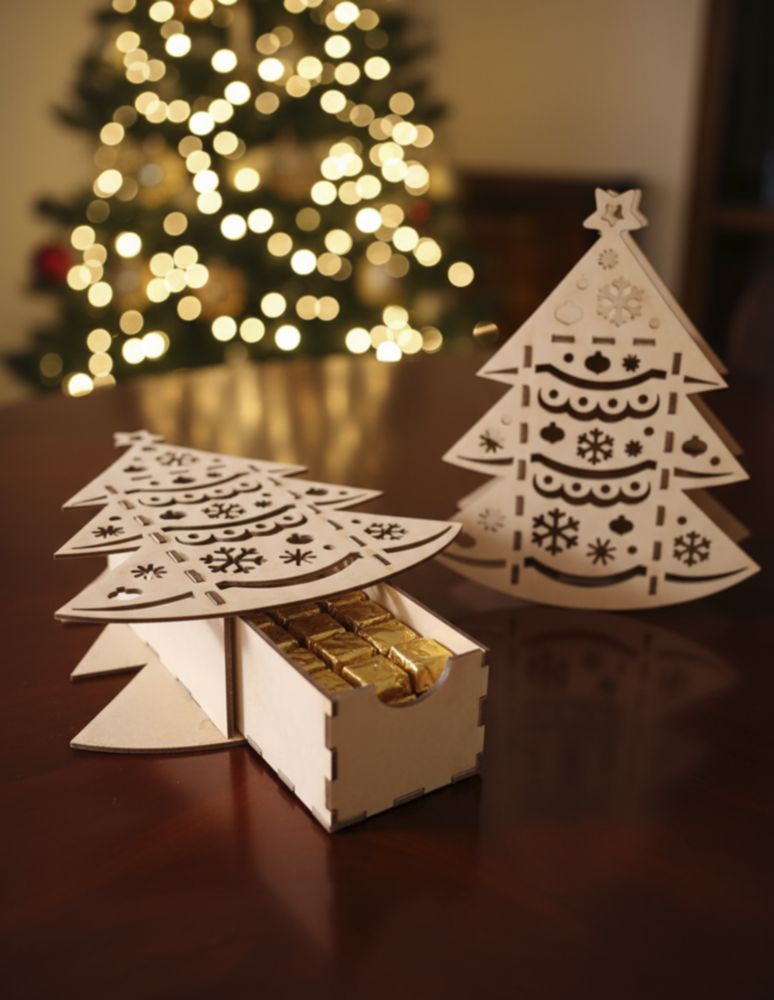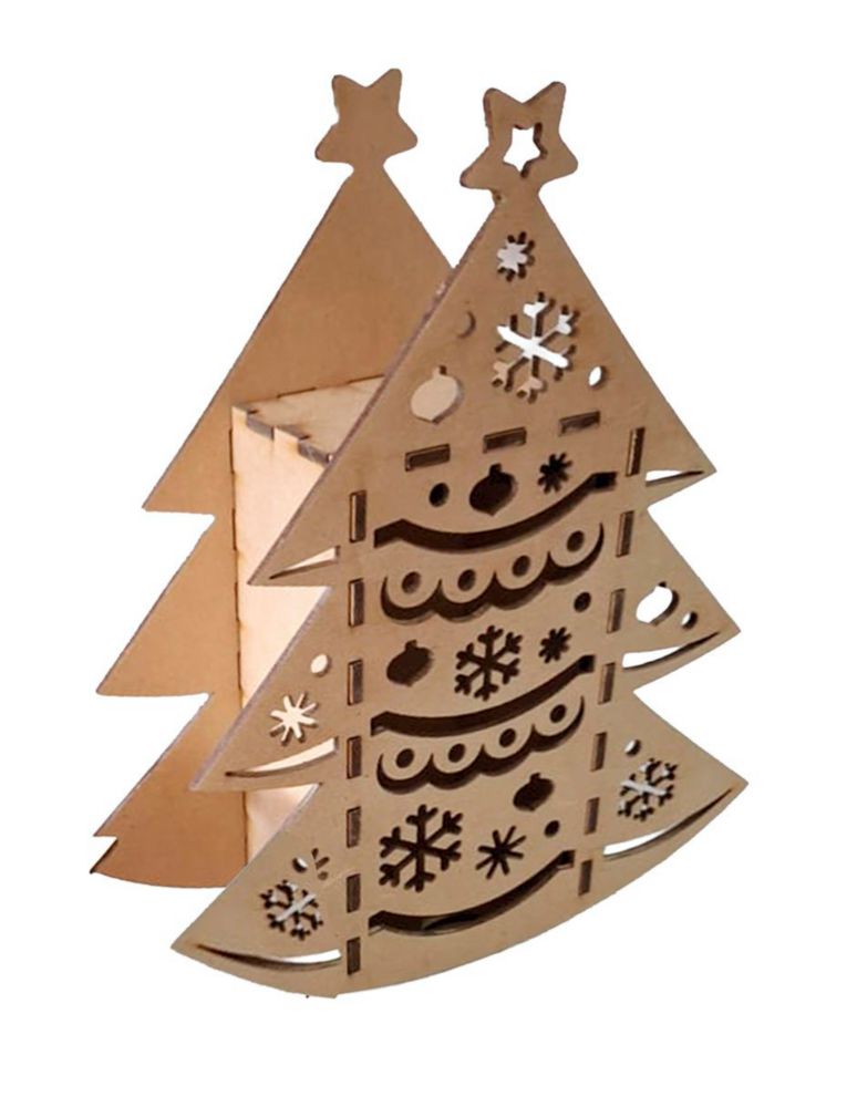 HogarDecoraciónAdornos de NavidadCaja chocolatera navideña en forma de pino MDF natural