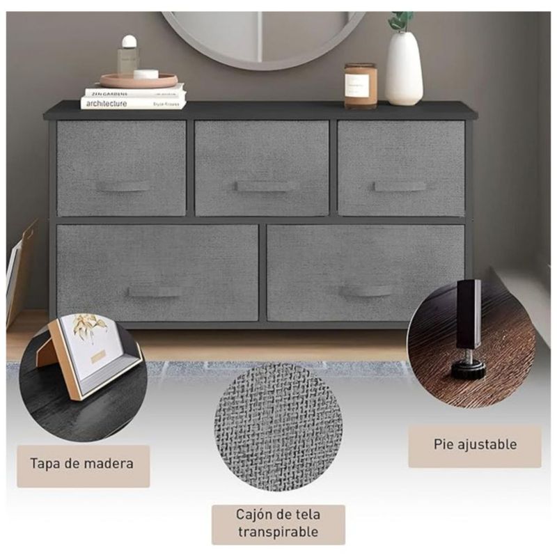 MueblesRecámaraCajoneras y CómodasCajonera Bluelander de 5 Cajones 55x100x30 cm, Acero, Gris Oscuro