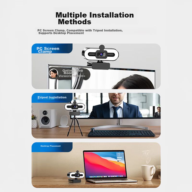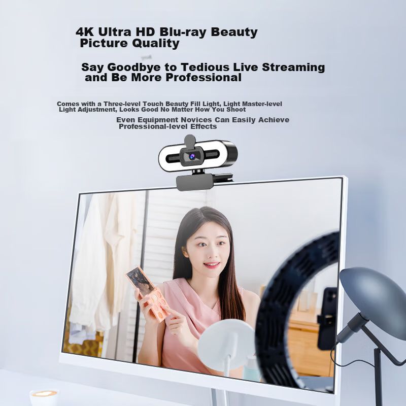 ElectrónicaCámarasDigitalesCámara web Stiger Ultra HD 4K con micrófono y luz de relleno