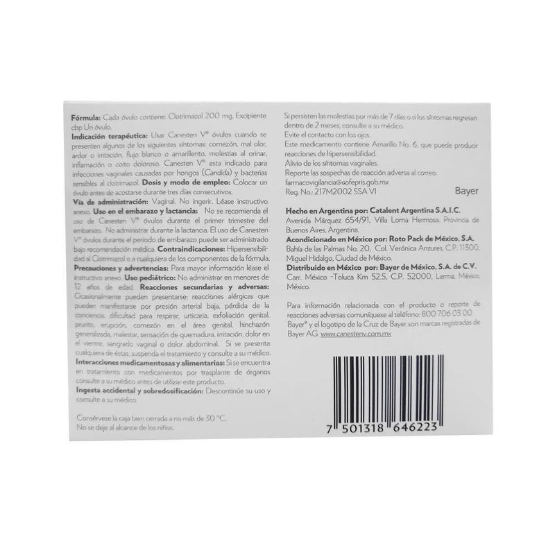 CANESTEN V 3 DÍAS CLOTRIMAZOL 200 mg Óvulo