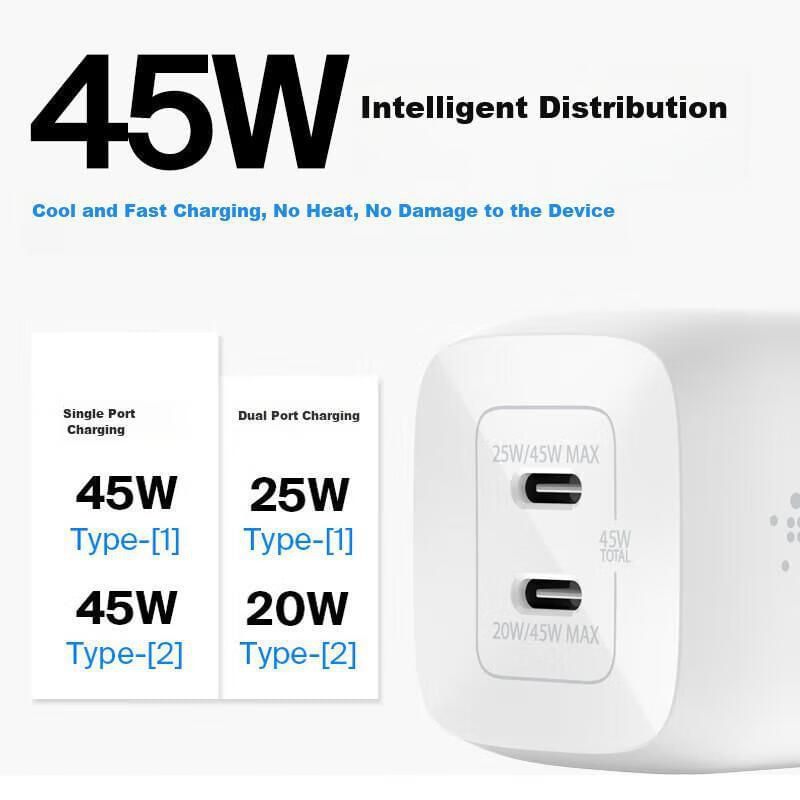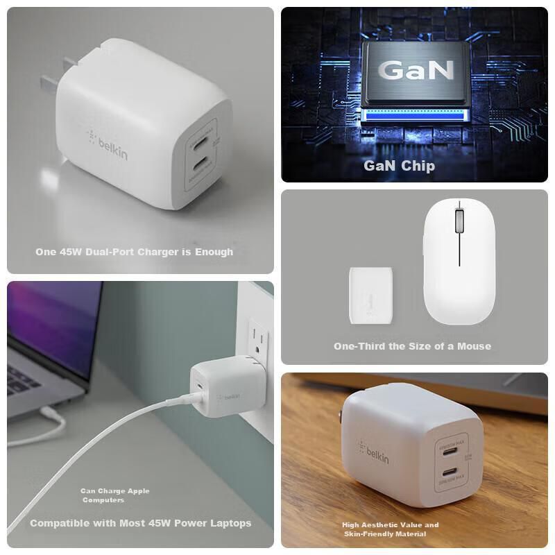 TelefoníaAccesorios para celularesCargadoresCargador Belkin GaN 45W USB-C Doble
