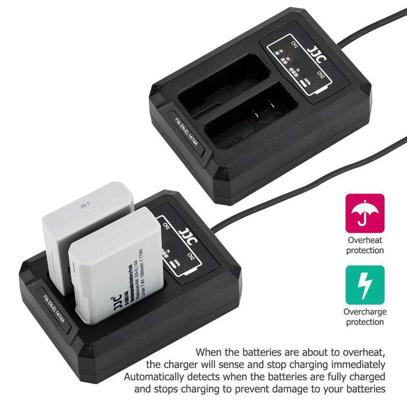 Cargador de batería JJC EN-EL14a EN-EL14 USB de doble ranura para Nikon
