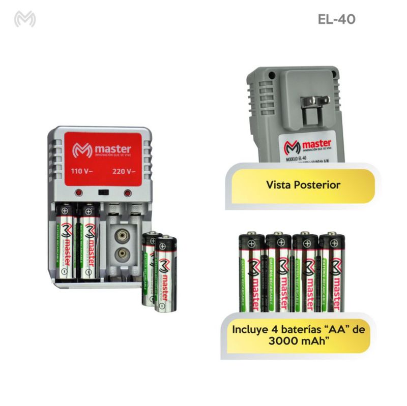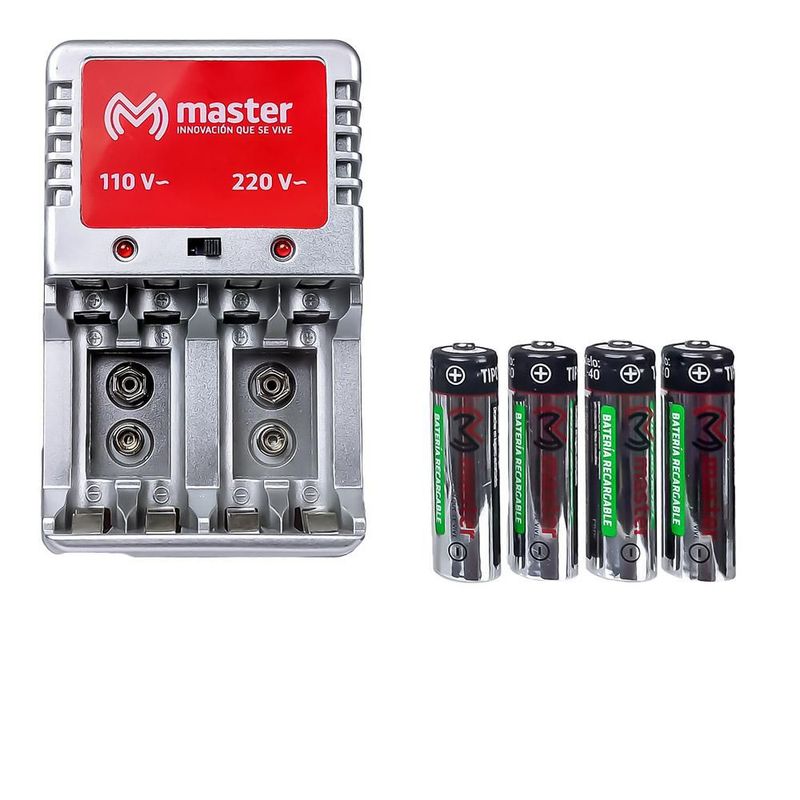 ElectrónicaAccesorios para electrónicaPilas y CargadoresCargador De Baterías AA, AAA, 9v y De 6w Con 4 Baterías AA 3000mah