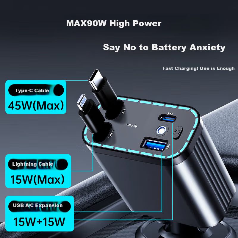 Cargador De Coche Newmine 4 Puertos Tipo C/Lightning/Usb-A Negro