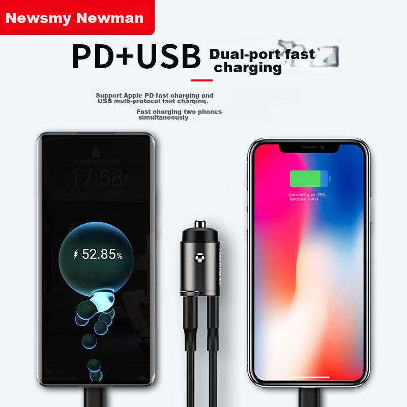 Cargador De Coche Newsmy Mini Doble Puerto Pd30W Negro