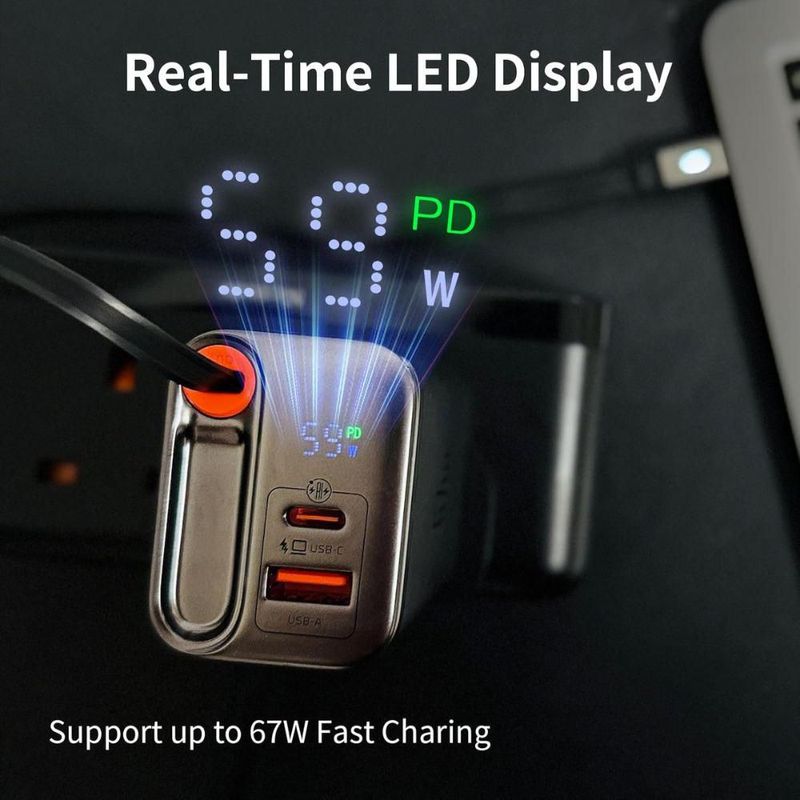 Cargador GaN 67W 3 en 1 Mcdodo Con cable retractable USB-C