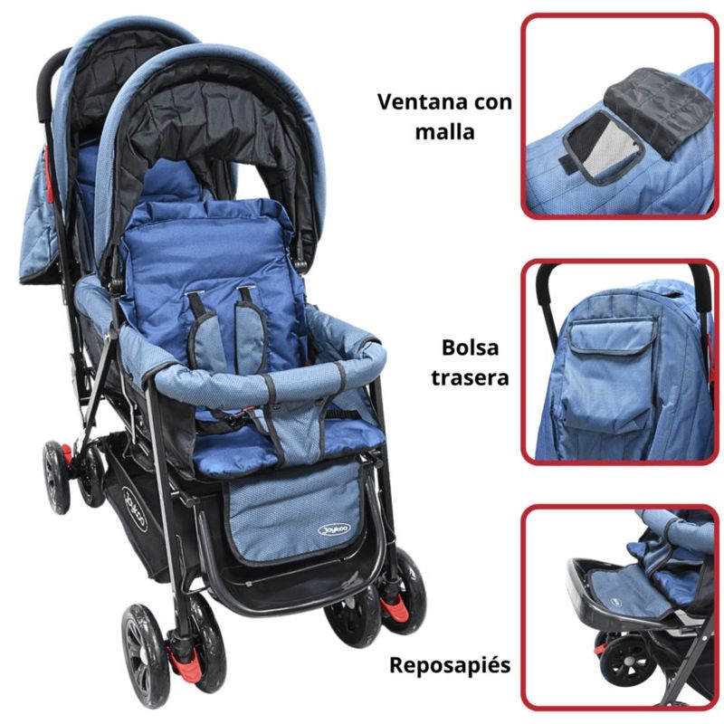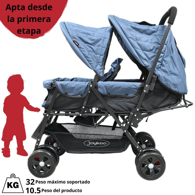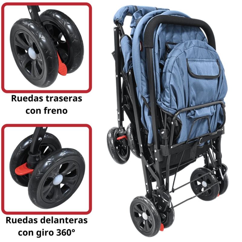 Carriola Doble para Bebés Gemelar Plegable con Asientos Reclinables Apta desde 0 Meses Soporta hasta 32 kg - Azul