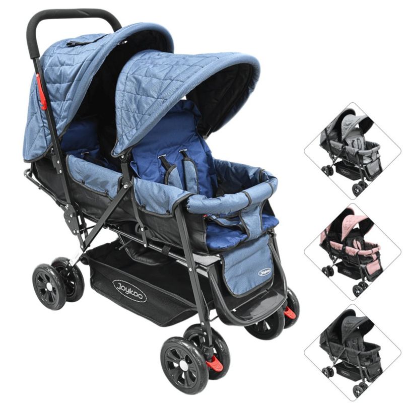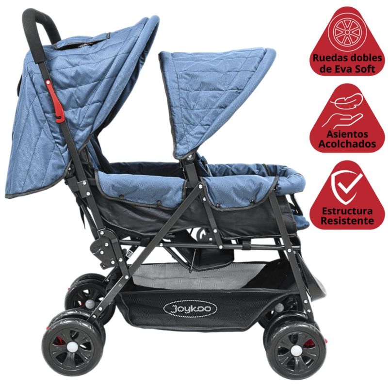 Bebés y juguetesBebésCarriolasCarriola Doble para Bebés Gemelar Plegable con Asientos Reclinables Apta desde 0 Meses Soporta hasta 32 kg - Azul