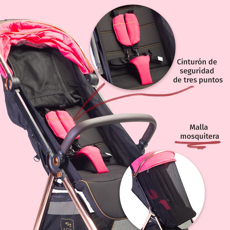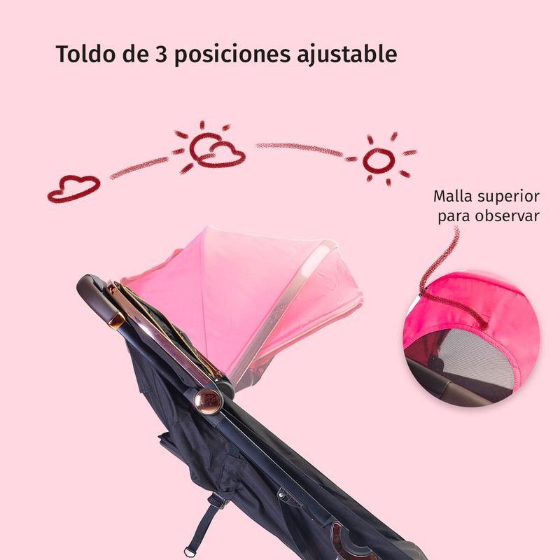 Bebés y juguetesBebésCarriolasCarriola Para Bebé Aeiou Australia Plegable A Una Mano Rosa Cromado