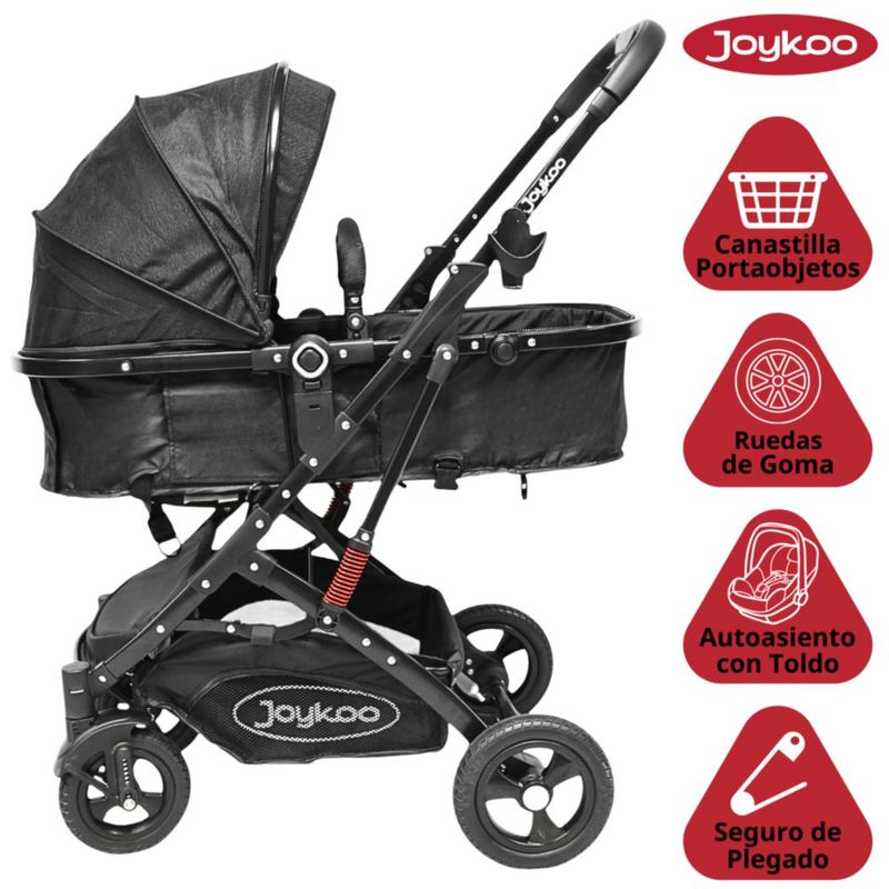 Carriola para Bebé con Portabebé Reversible Convertible a Bambineto Ruedas de Goma con Freno Plegable Cinturón de 5 Puntos - Negro