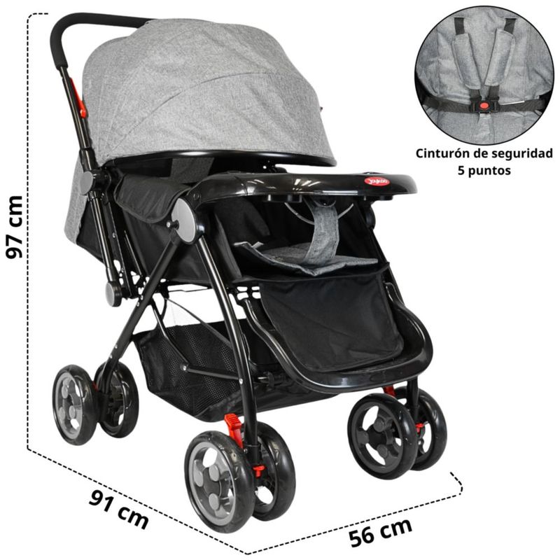 Carriola para Bebé Manubrio Reversible Asiento Reclinable Frenos y Cinturón de Seguridad Soporta hasta 15 kg - Gris
