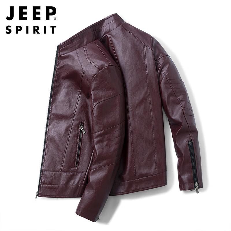 Chamarra de Cuero JEEP SPIRIT Cuello de Pie Para Hombre Vino